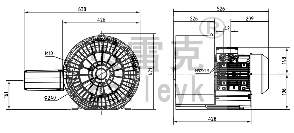 最大風(fēng)量:320m3/h 最大正壓:380mbar 最大負(fù)壓:360mbar 防護(hù)等級(jí):IP55 噪音:73db 重量:56Kg