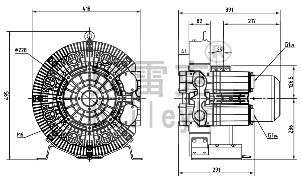 最大風(fēng)量:165m3/h 最大正壓:480mbar 最大負(fù)壓:340mbar 防護(hù)等級:IP55 噪音:65db 重量:35Kg
